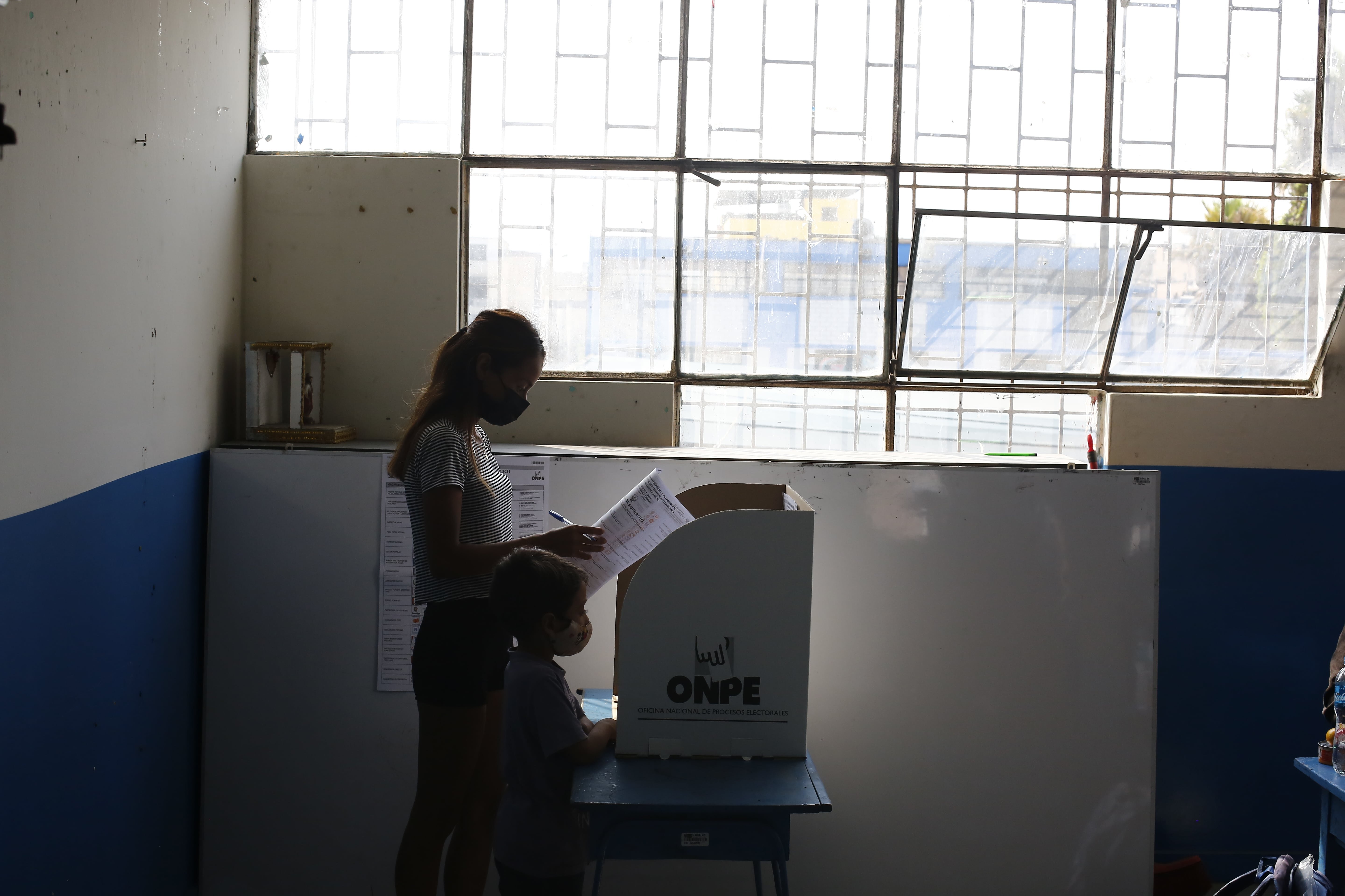 Una joven y un niño, al borde de la ánfora en la que se determina al próximo presidente del Perú.
