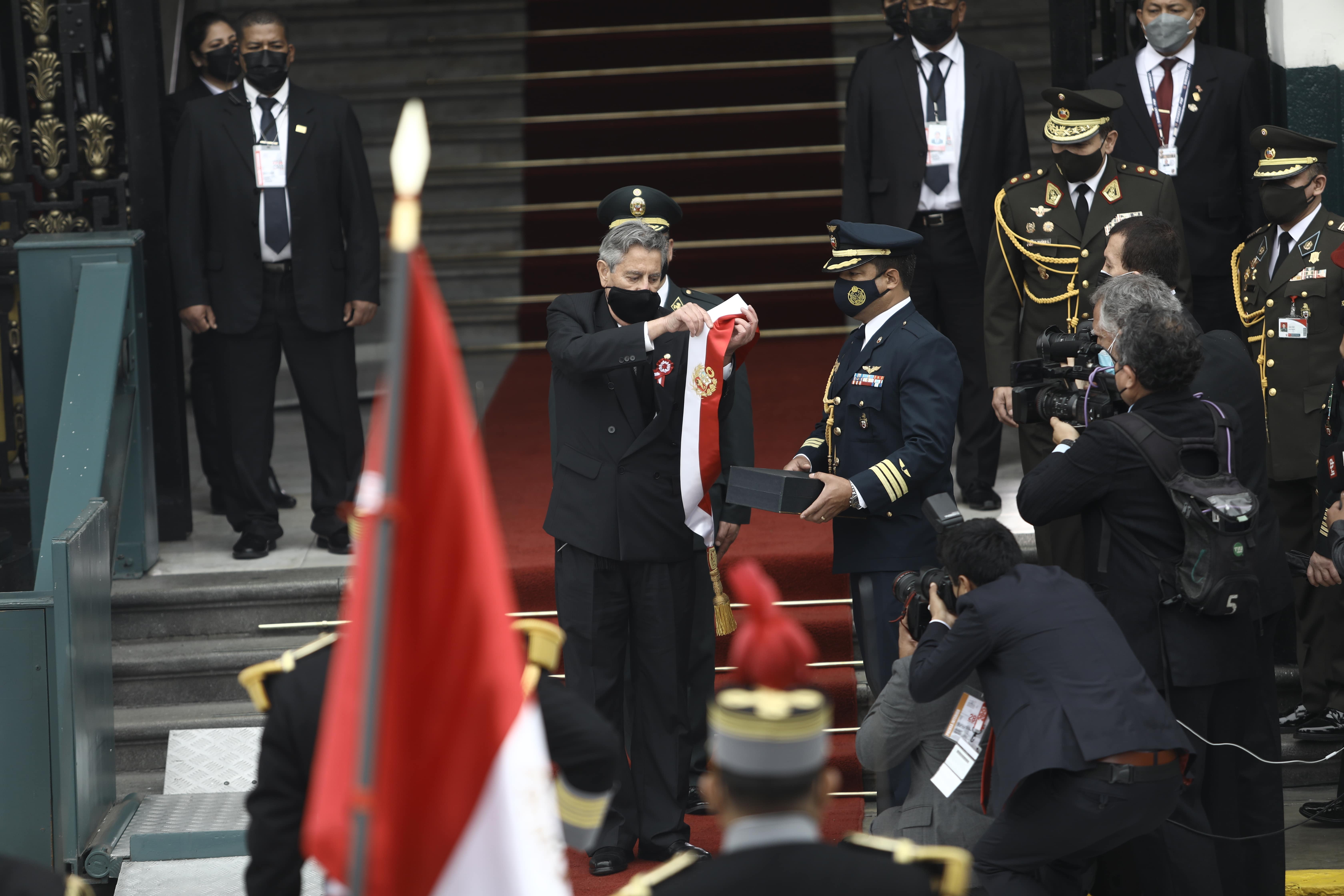 Francisco Sagasti, haciendo entrega de la banda presidencial.