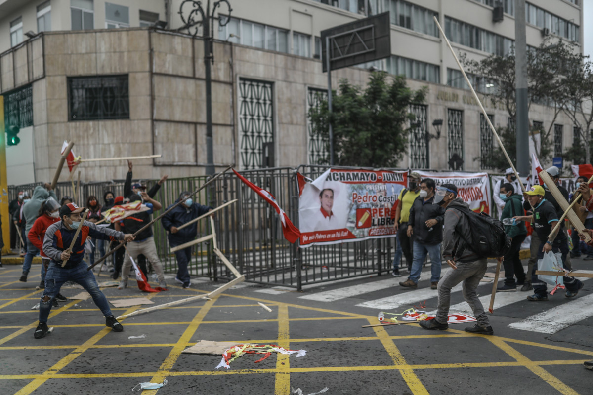 En el Centro de Lima, simpatizantes fujimoristas y seguidores de Perú Libre.