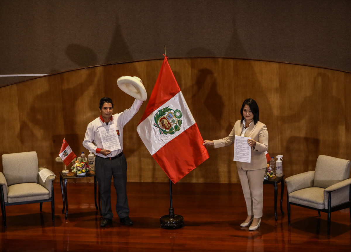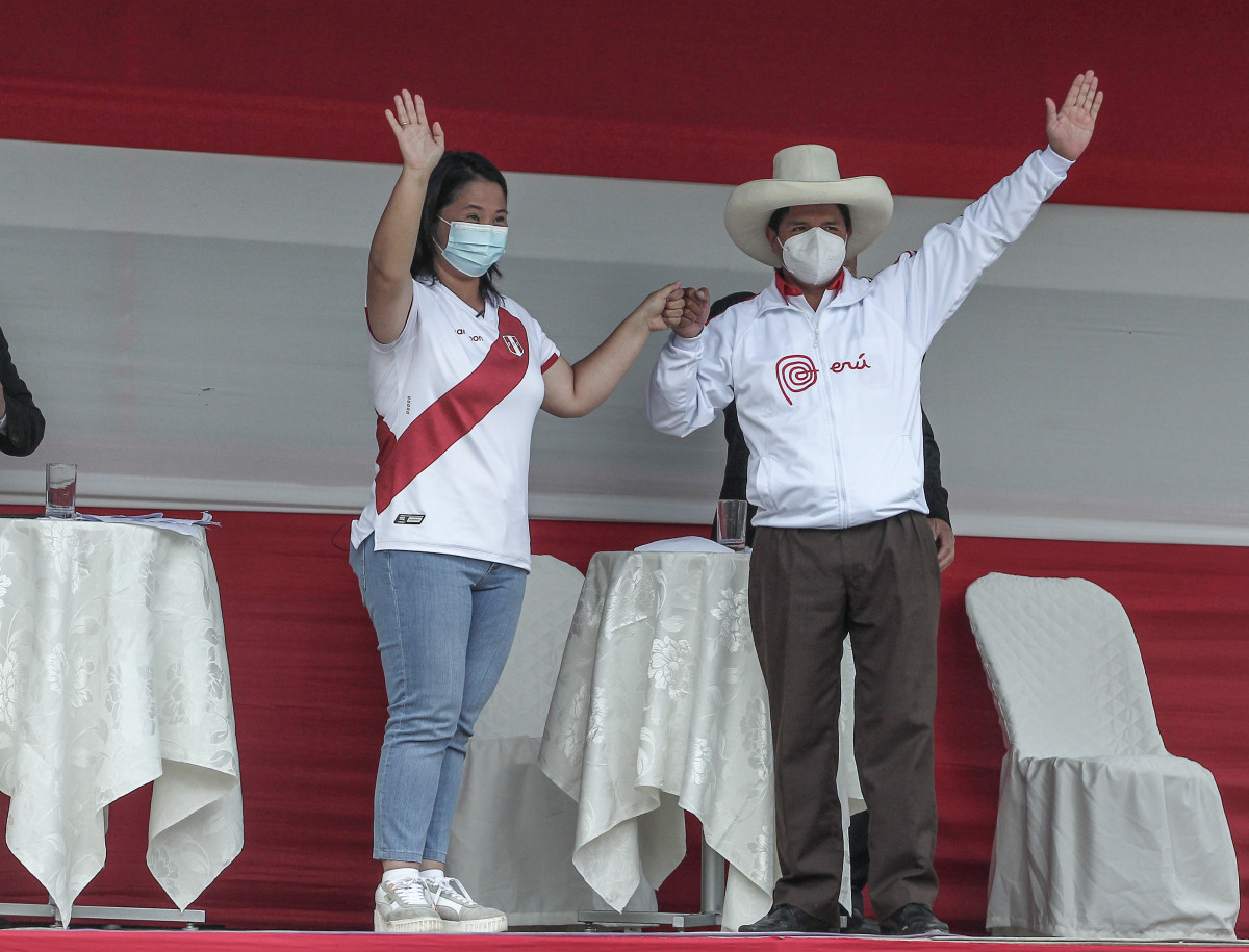 Pedro Castillo y Keiko Fujimori, una postal del debate en Chota.